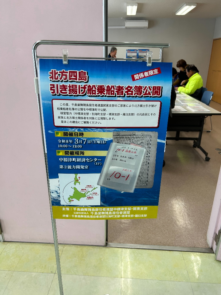 千島連盟中標津支部は本日、同関東支部のご厚意により北方領土引揚げ船乗船者名簿の公開を開催、20名のご参加を頂きました。
